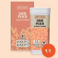 Pot + Pan | Sour Peach 1:1 | 5mg Gummy | 5mg CBD | 20-Pack | 100mg Total