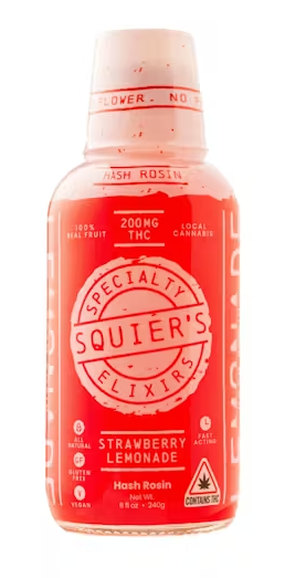 Created by Squier's, these cannabis drinks will bring a THC-powered pep to your step! They are made with solventless live hash rosin, which is a live cannabis concentrate that has been extracted without the use of hydrocarbon solvents such as butane or propane. All Squier's drinks are sweetened with blue agave nectar rather than sugar. With this particular drink, experience the herbal fruitiness of a strawberry hibiscus lemonade!