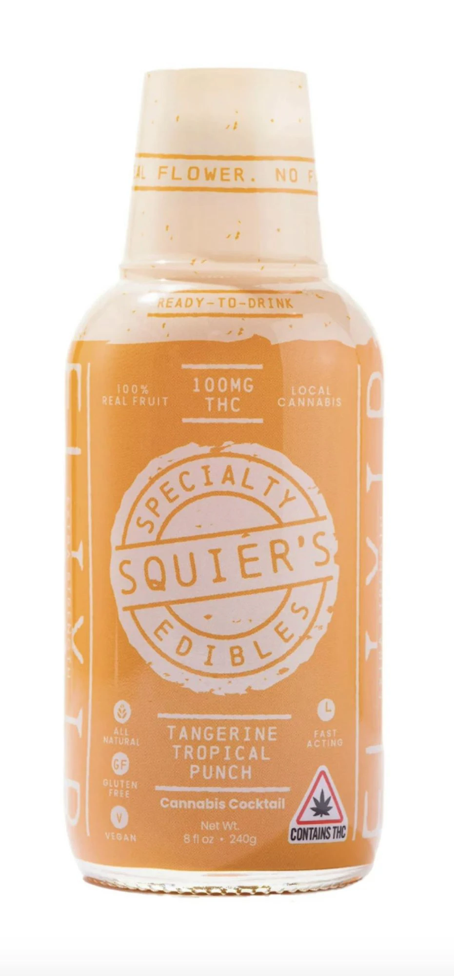 Created by Squier's, these cannabis drinks will bring a THC-powered pep to your step! They are made with solventless live hash rosin, which is a live cannabis concentrate that has been extracted without the use of hydrocarbon solvents such as butane or propane. All Squier's drinks are sweetened with blue agave nectar rather than sugar. With this particular drink, experience the equatorial bliss of a tangerine tropical punch!