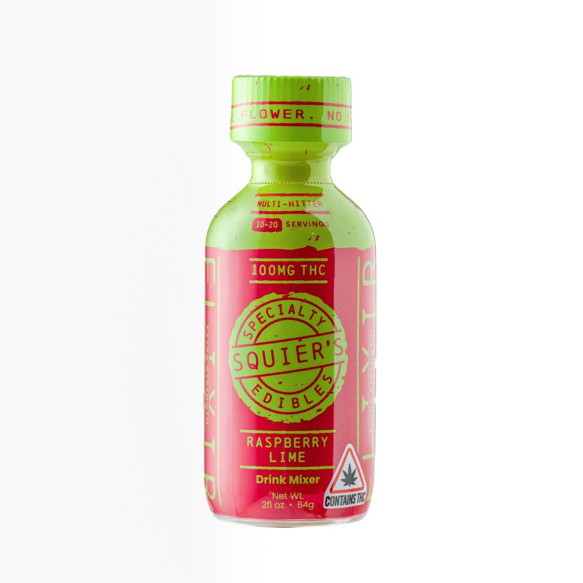 Created by Squier's, these cannabis drink mixers will bring a THC-powered pep to your step! They are made with solventless live hash rosin, which is a live cannabis concentrate that has been extracted without the use of hydrocarbon solvents such as butane or propane. This product is intended to be mixed with other liquids, but can also be consumed directly as well. All Squier's drinks are sweetened with blue agave nectar rather than sugar. With this particular drink, experience the sour fruitiness of a raspberry lime mixer!